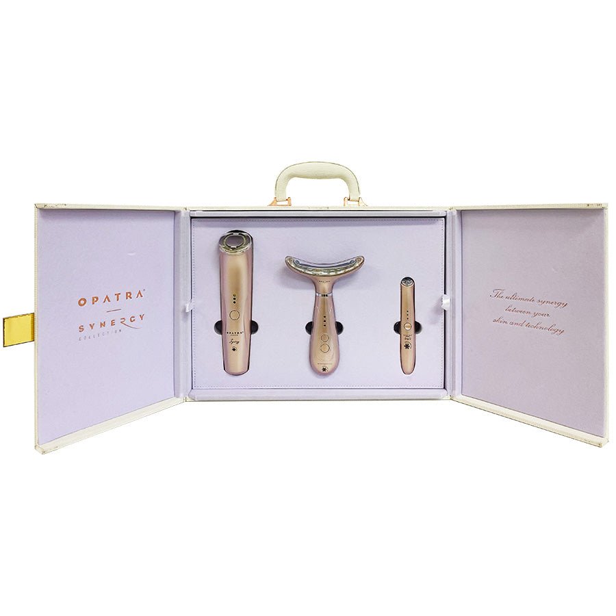 The Opatra Synergy collection case combines the award-winning technology from our three best-selling Synergy devices: Face, neck and eye. Using a combination of LED light therapy and vibration massage these skincare devices work synergistically to deliver the ultimate anti-ageing solution.