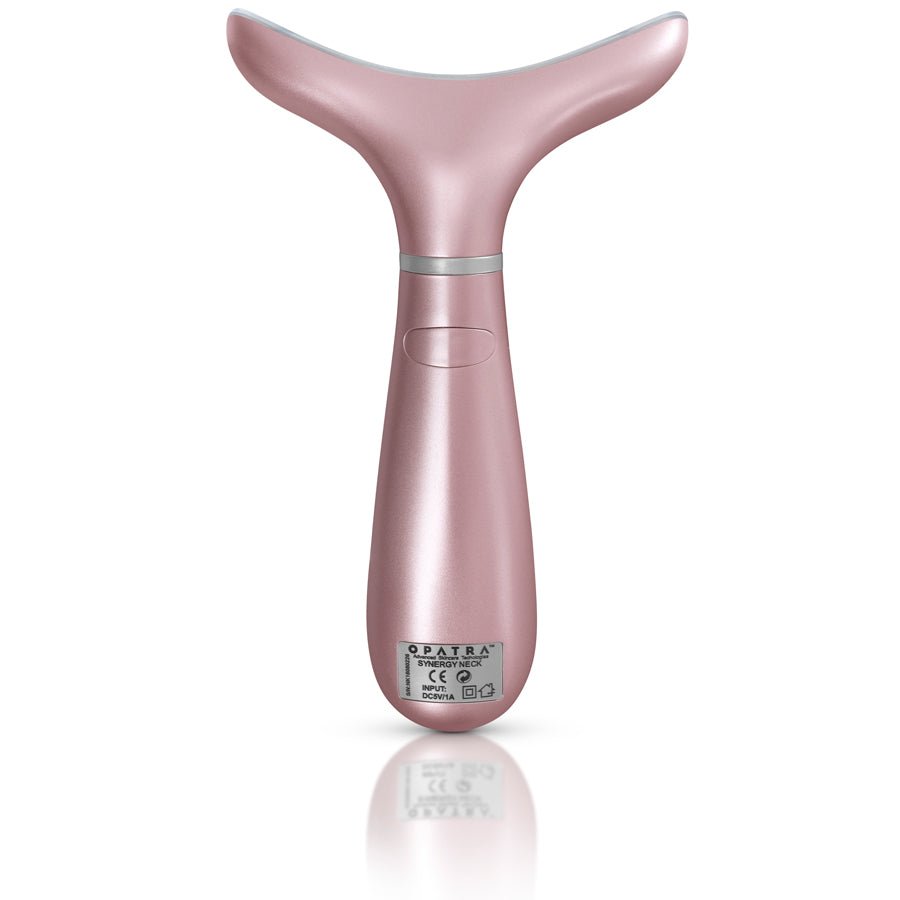 The Synergy Neck, a handheld beauty tool that uses ground-breaking anti-ageing technology, combining high-speed massage, light therapy and heating/cooling system to help reverse signs of ageing on the delicate neck area. Different to the Dermineck, the Synergy neck utilises blue and green led light to reduce hyperpigmentation and even skin tone in addition to the following benefits: